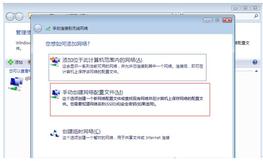 4. 点“手动创建网络配置文件”。