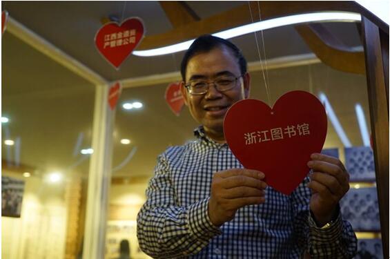 浙江图书馆党委书记雷祥雄将爱心牌挂在学校校史馆爱心树上