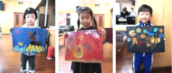 最后,小朋友们将自己的作品一起拍照留念。色彩缤纷的落叶贴画让人目不暇接,也让我们充分感受到了小朋友非凡的想象力和创造力。