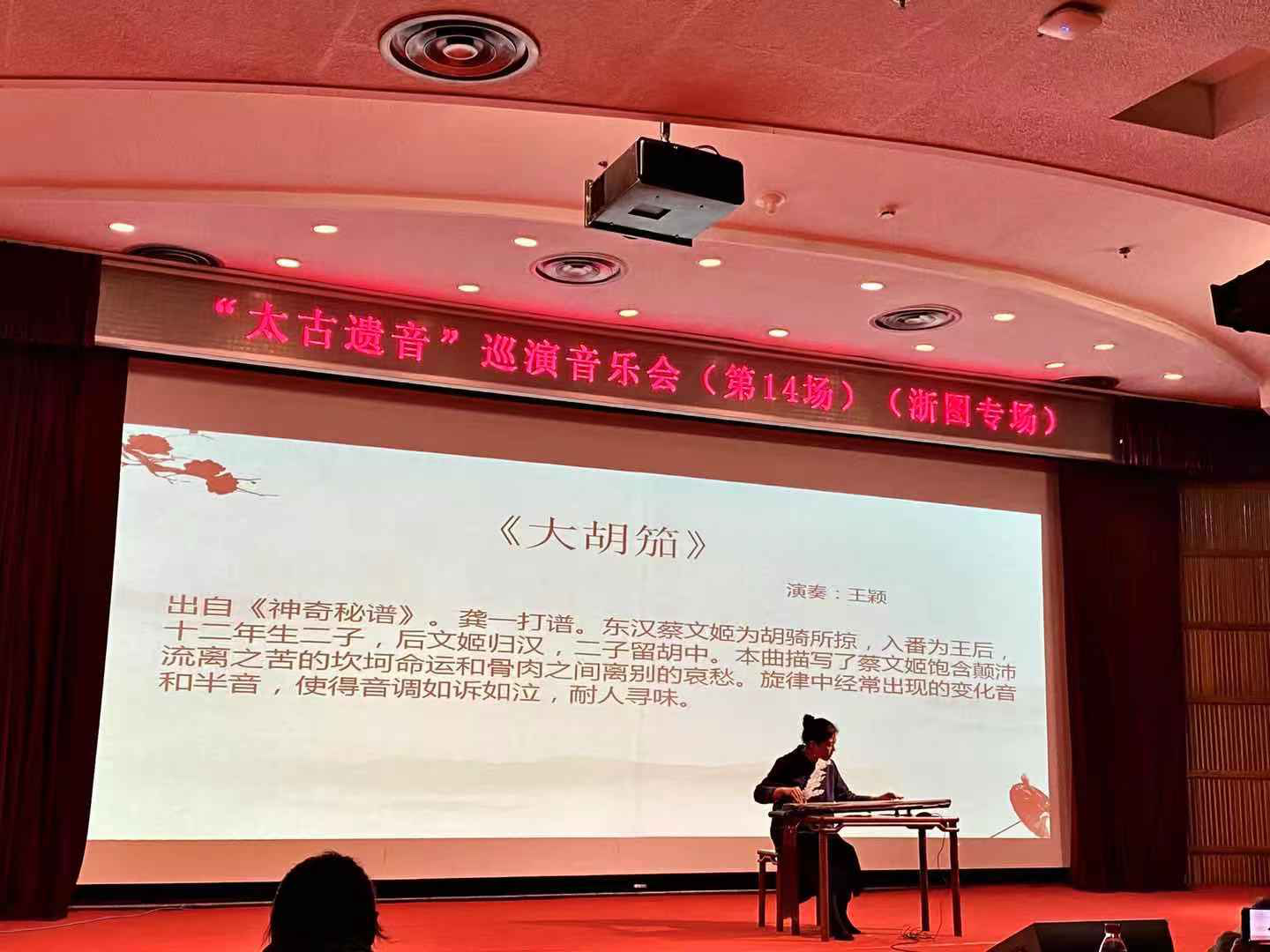 2020年11月14日19:00,浙江图书馆响起悠扬的古琴声。 “太古遗音巡演音乐会”在二楼报告厅精彩上演。全国各地的古琴名家大师汇聚于此,演奏了不同朝代,多种风格的曲调,带来了一场听觉盛宴。