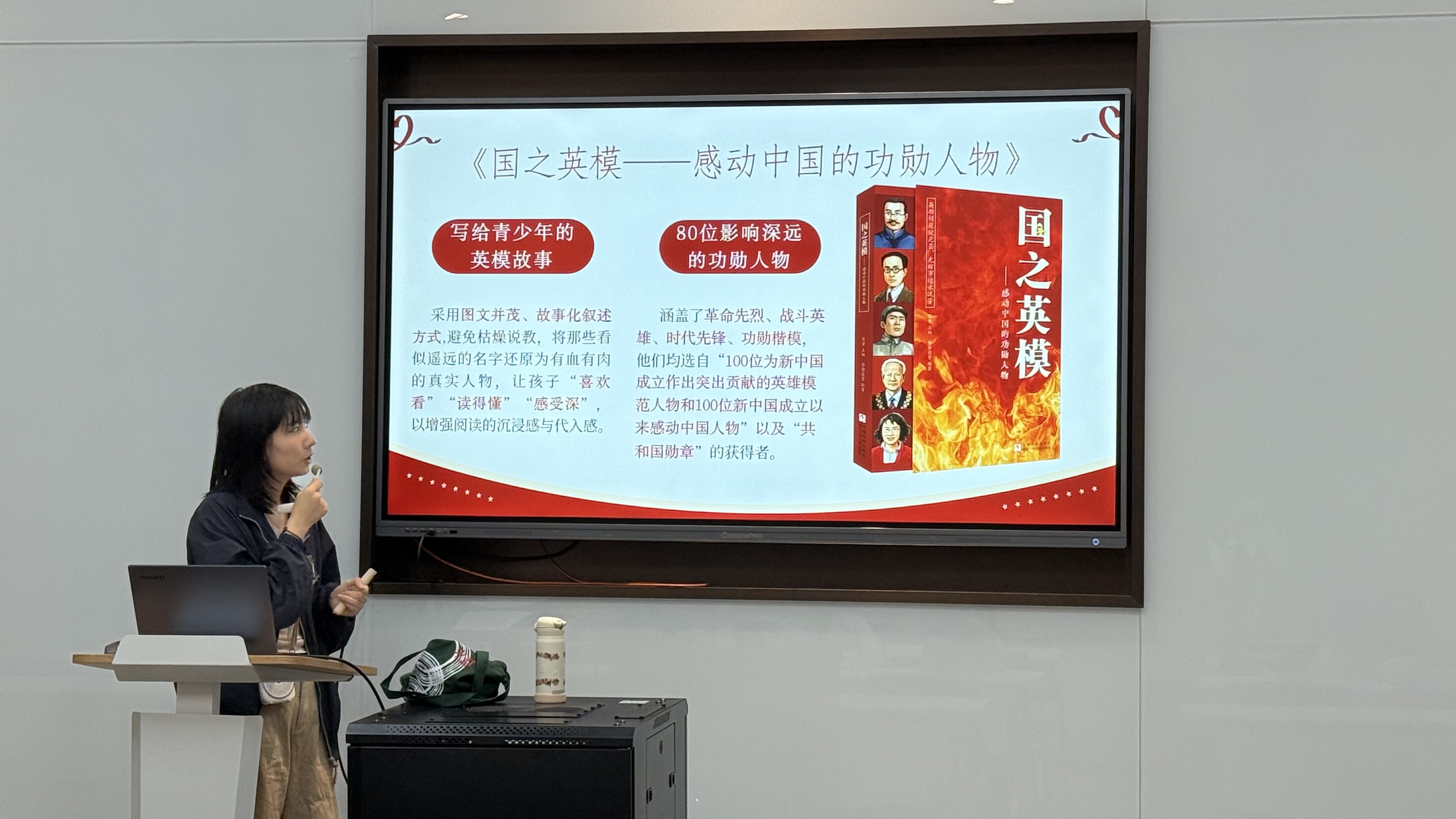2025年10月18日下午,浙江少年儿童出版社的编辑徐暖阳来到浙江图书馆,分享“国之”系列的最新作品《国之英模——感动中国的功勋人物》。10余位小读者和家长朋友齐聚交流空间(二),共同见证英雄模范攻坚克难的坚定选择和其背后矢志坚守的赤诚之心。