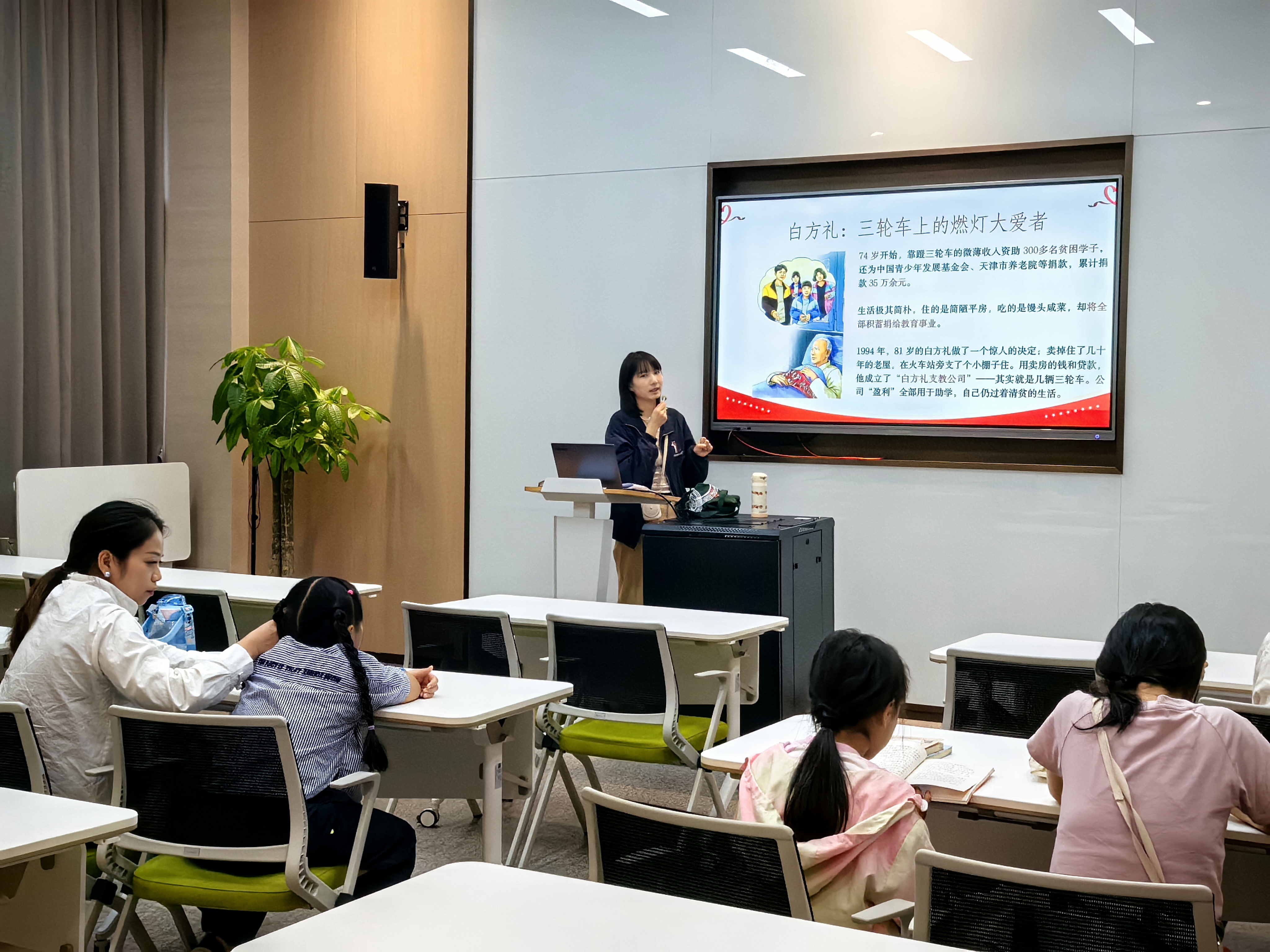 活动中,编辑老师向小读者们分享了革命先烈、战斗英雄及时代先锋在关键时刻挺身而出,在平凡中坚守初心的动人故事:赵一曼带领队伍打击日军,被誉为“白山黑水”民族魂的抗日女英雄,却在31岁英勇就义,牺牲前写下《示儿书》;白方礼靠着蹬三轮车的微薄收入资助300多名贫困学子,将全部的积蓄都捐给了教育事业,自己却过着清贫的生活……他们的人生经历和精神风貌无不让在场的小读者们动容,而这一份英雄模范为后世带来的深远影响,也将通过这种方式继续传递下去。