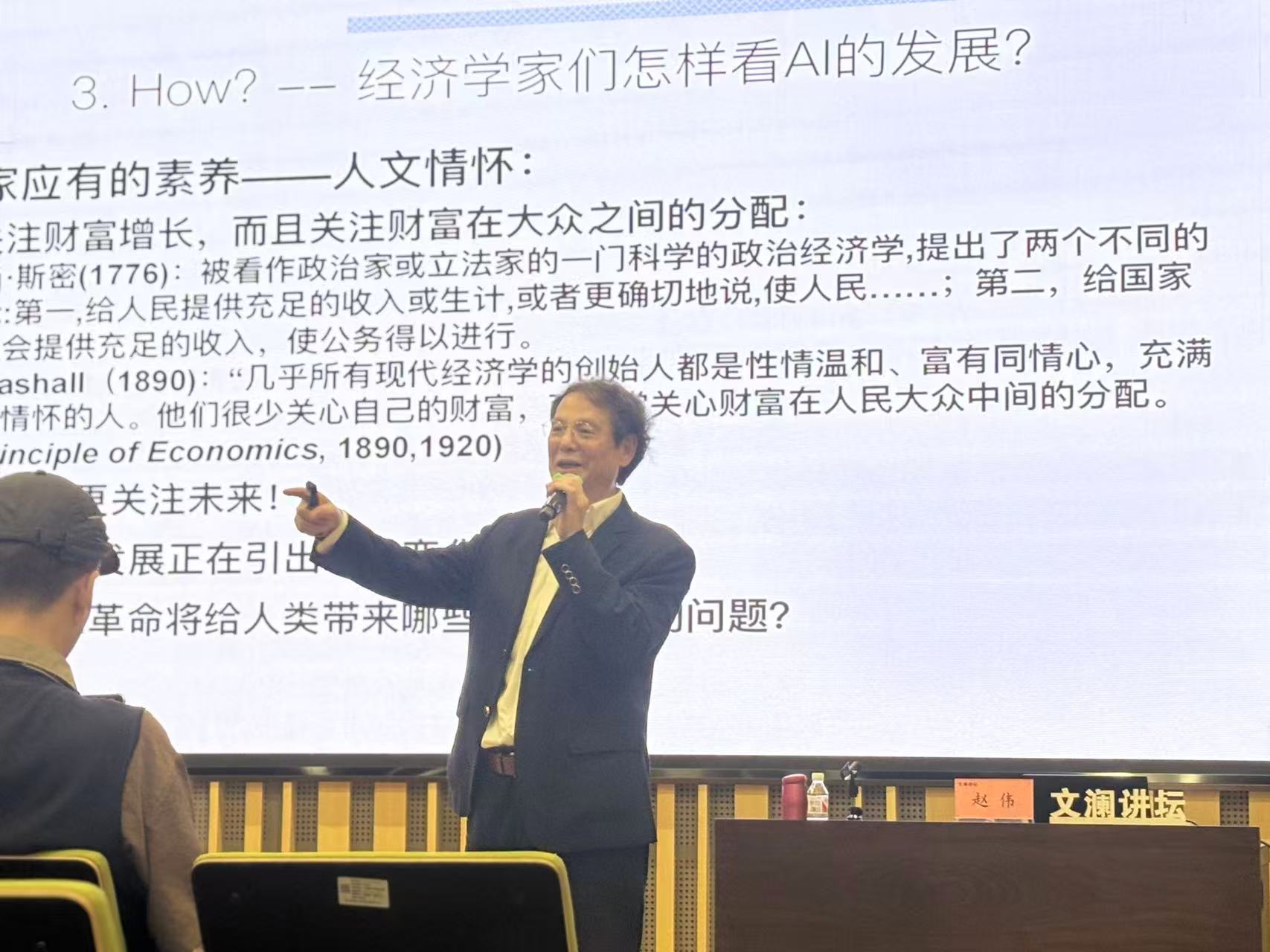 本场讲座,约有100余人到场聆听,赵伟教授以其渊博的学识、清晰的逻辑和富有感染力的讲述,将复杂的经济学理论转化为生动的洞察,为听众构建了一个理解人工智能影响的全新坐标系,讲座在意犹未尽的交流中圆满落幕。