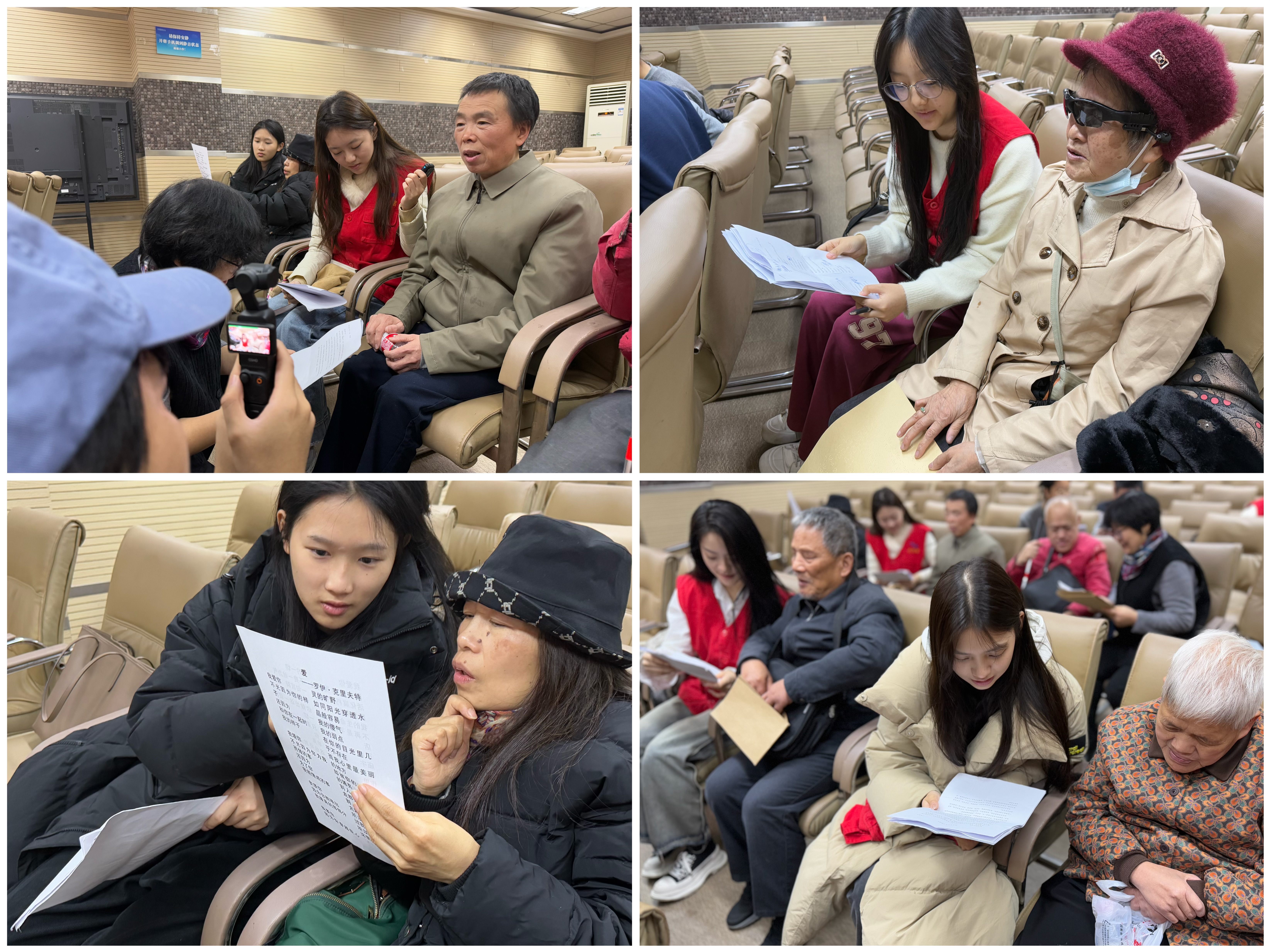 第二场培训则在前次基础上深化实践。课程重点围绕作品完整演绎与个性化表达展开。在工作人员和志愿者协助下,学员根据自身情况选用盲文版、大字版或音频材料,选定篇目并投入排练。童老师与志愿者逐一指导,从情感表达到语音细节,帮助每位学员提升作品的感染力。课程尾声,学员们带着收获与成长,在专业支持下完成了个人朗诵作品的录制。