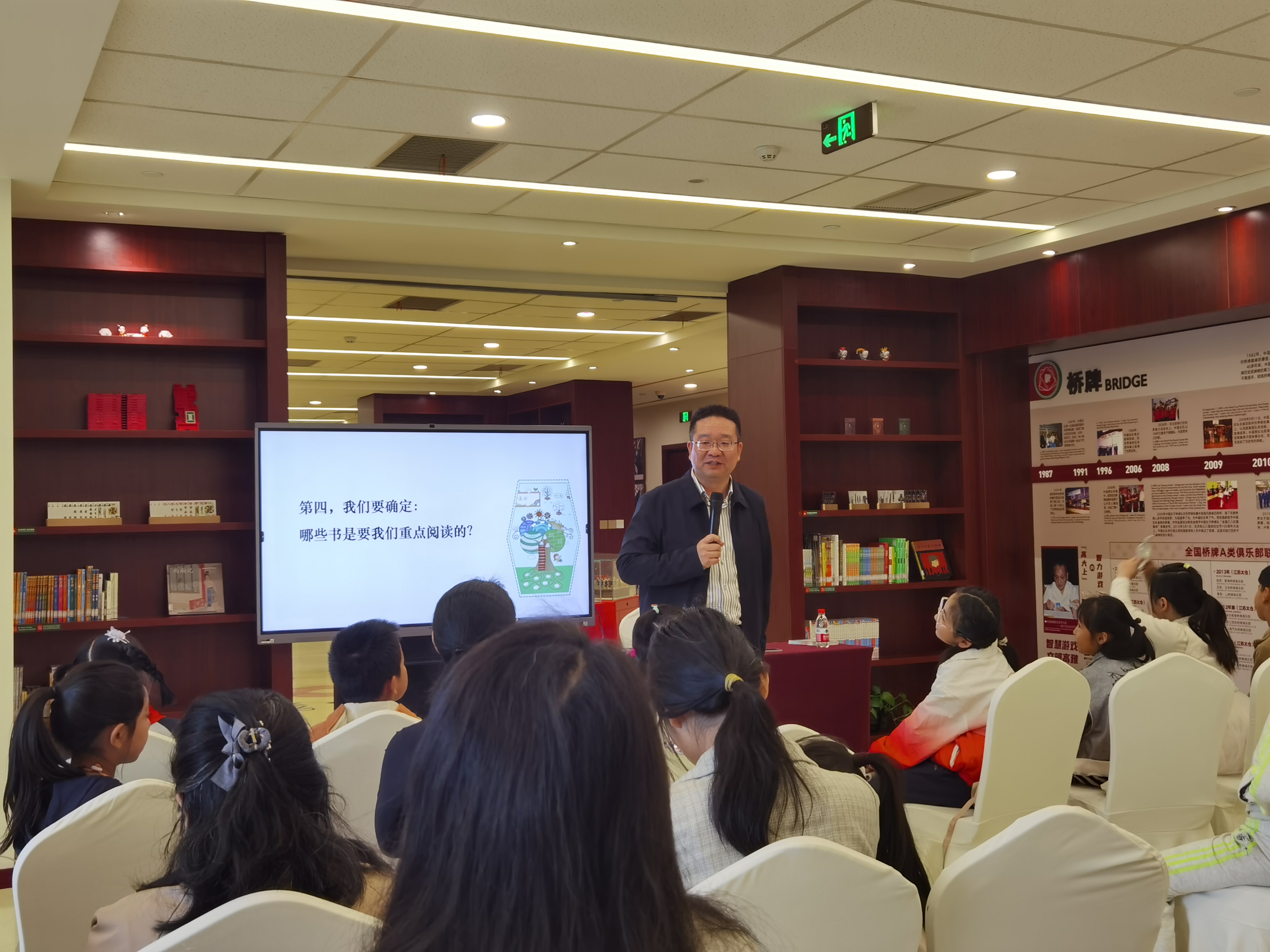 本次讲座特邀“阅读SHU”计划发起人——杭州养正小学党支部书记、校长邵宏锋担任主讲。邵校长开篇即强调,在AI时代,阅读不仅是获取知识的途径,更是培养孩子核心竞争力的关键。他继而提出,读书须掌握正确方法,整个过程中必须让思维时刻“在线”。讲座中,邵校长不时抛出趣味问题,孩子们争先恐后举手回答,现场气氛十分热烈。