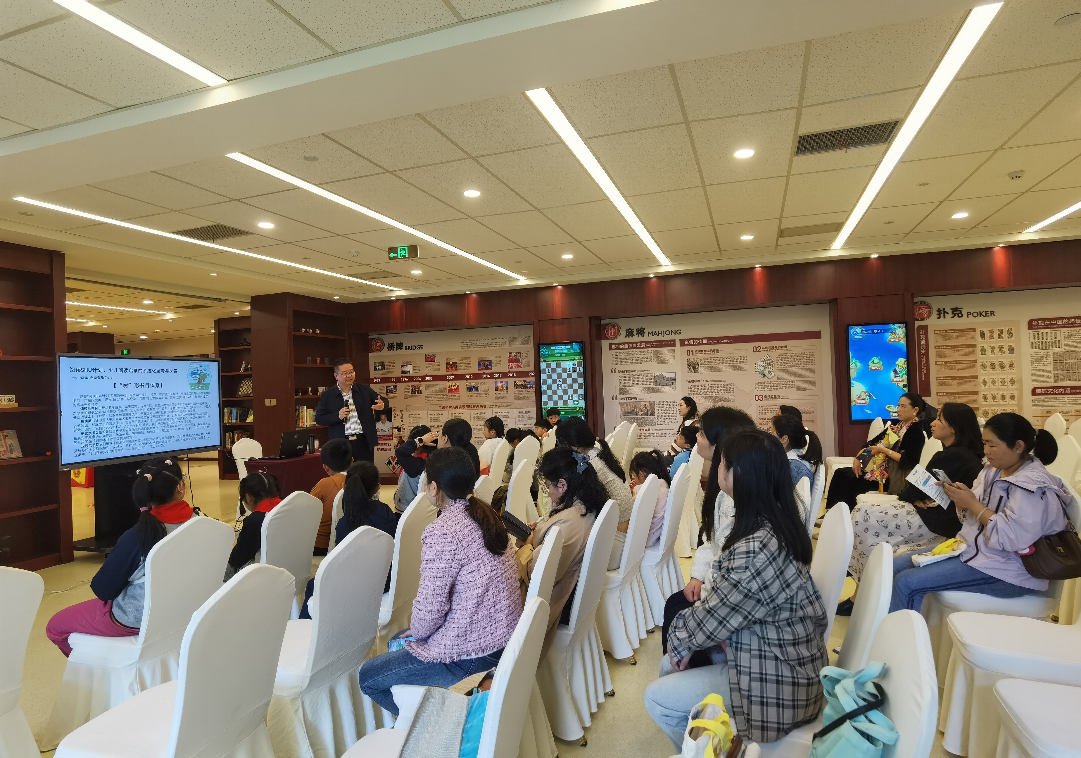 为丰富青少年儿童的精神文化生活,2026年4月18日,由浙江图书馆、中国棋院杭州分院共同举办的《为孩子设计一个“阅读SHU”计划》专题讲座在浙江图书馆智力运动主题图书馆开展,100余位孩子及家长参与。