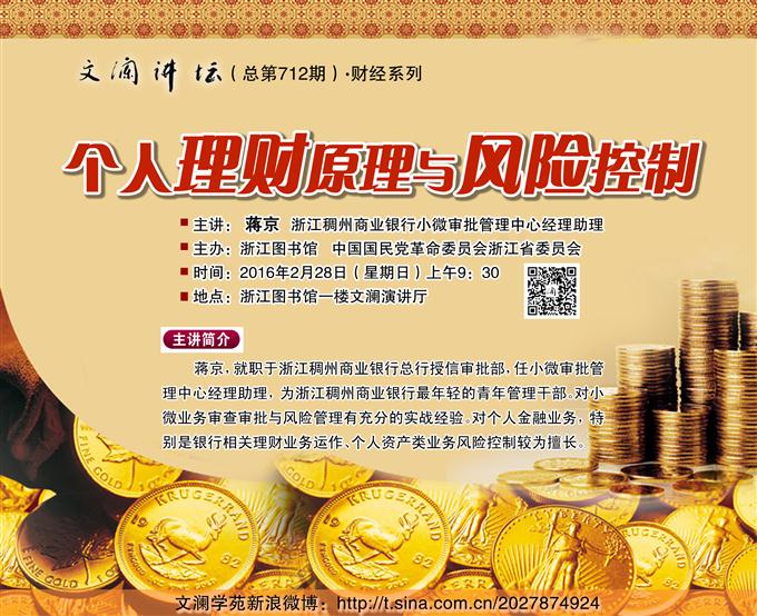 【文澜讲坛】(总第712期)•财经系列 个人理财原理与风险控制