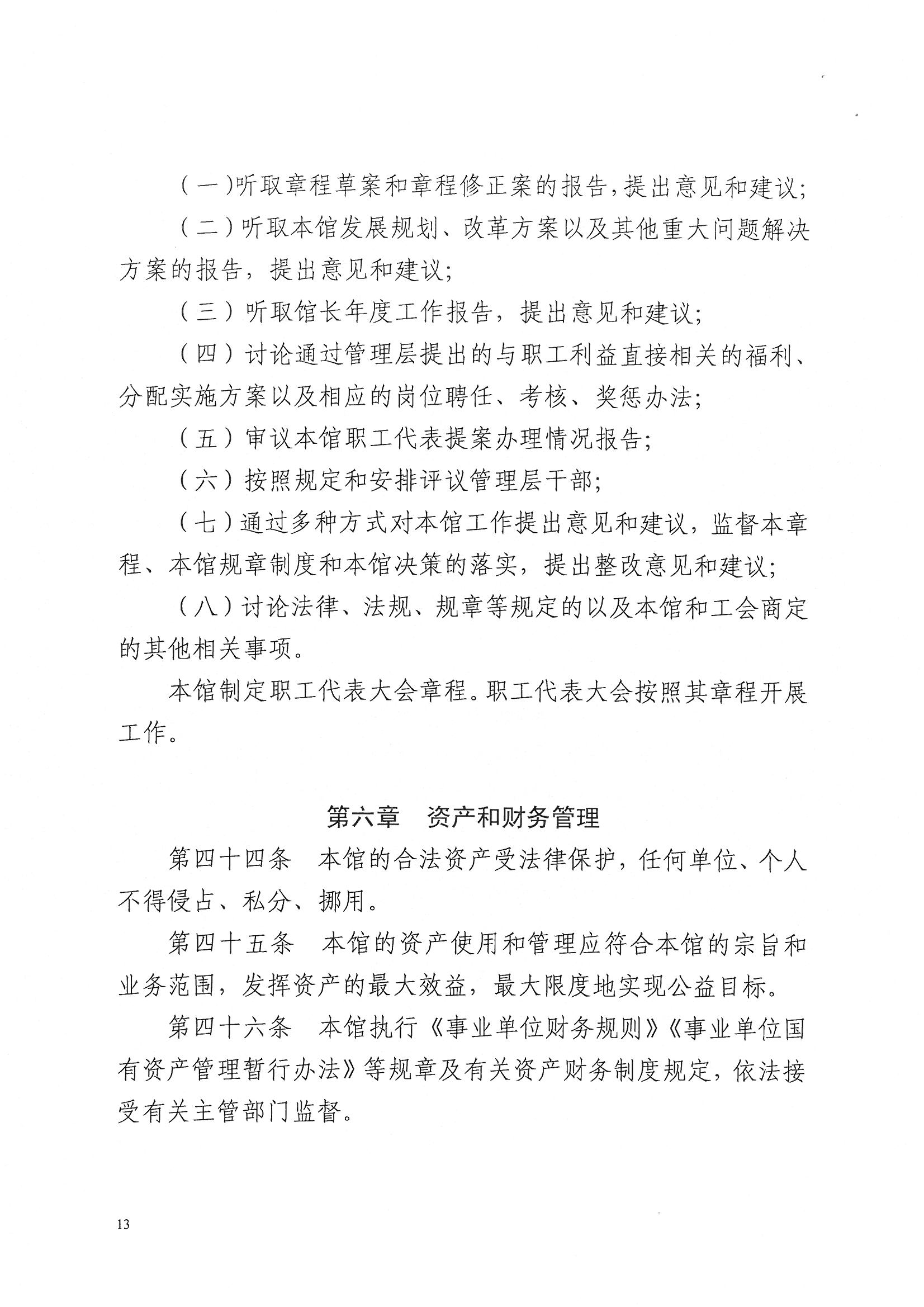 我馆是文化部和浙江省文化厅确定的法人治理结构改革试点单位。2014年9月,成立由馆主要领导为组长的理事会筹建工作小组,并着手起草章程。章程草案经过多方面、多层次、多部门征求意见和修改,形成《浙江图书馆章程》(征求意见稿),于2015年4月13日在《浙江日报》和《钱江晚报》上刊登征求意见公告,同时在浙江图书馆网站和浙江省文化厅网站上全文公示,向社会公众征求意见。5月19日,《浙江图书馆章程》(草案)经浙江图书馆第三届职工代表大会第六次会议通过,党政联席会议审议通过,现已经省文化厅核准。